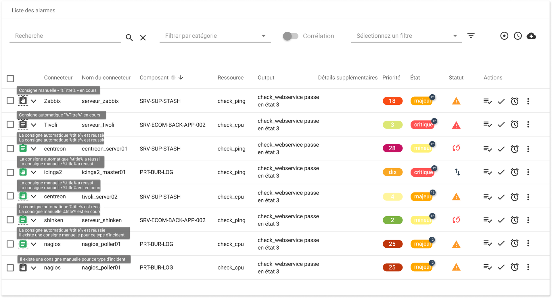 | Manuel | L'exécution de la remédiation est à l'initiative du pilote à partir d'un bac à alarmes. Le système lui présente toutes les opérations à effectuer. Ces opérations peuvent inclure des jobs |